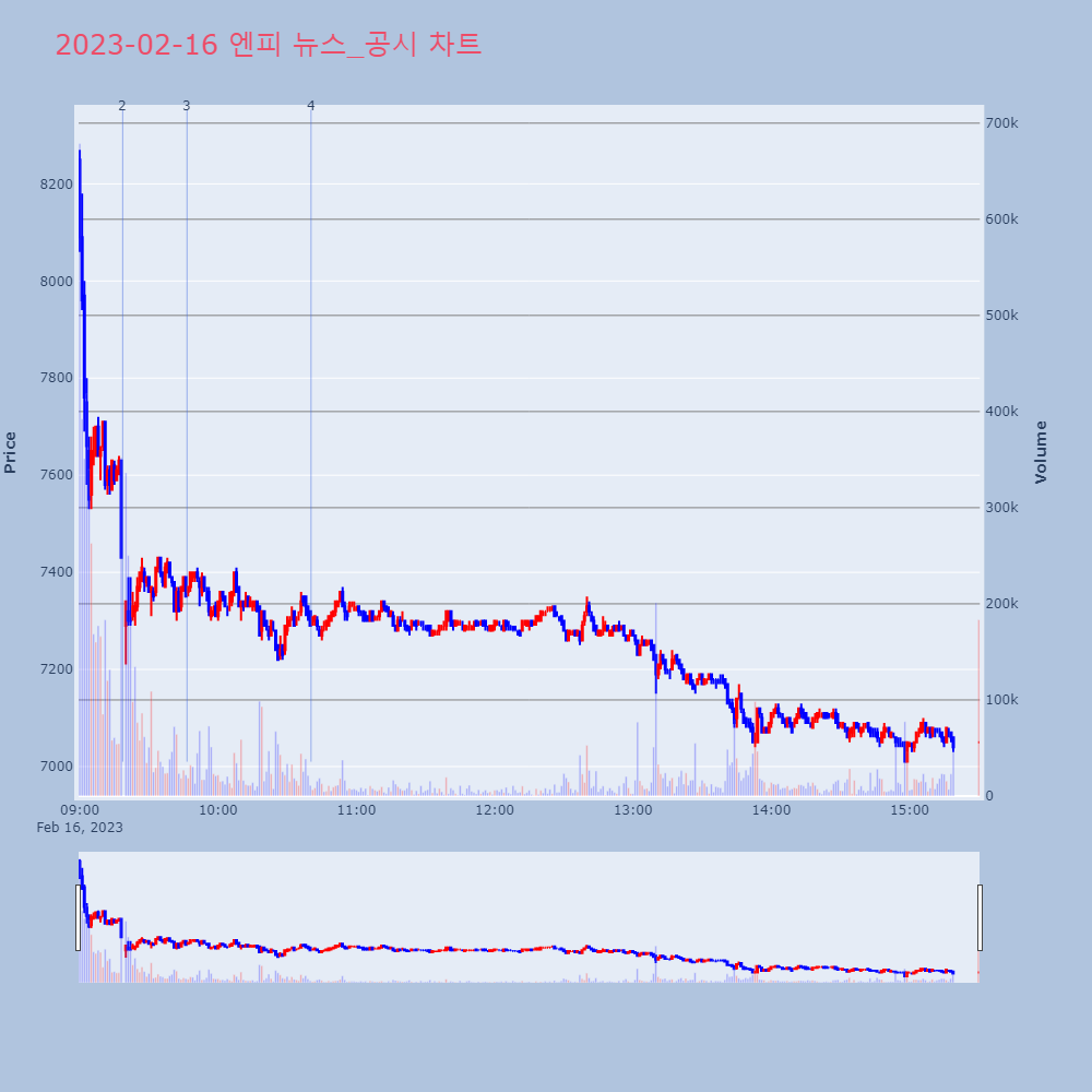 | 2 | 엔피, -10.16% VI 발동엔피가 VI가 발동했다. 전일 대비 10.16% 하락한 | 조선경제 | 엔피 | 2023-02-16 09:18:37 |