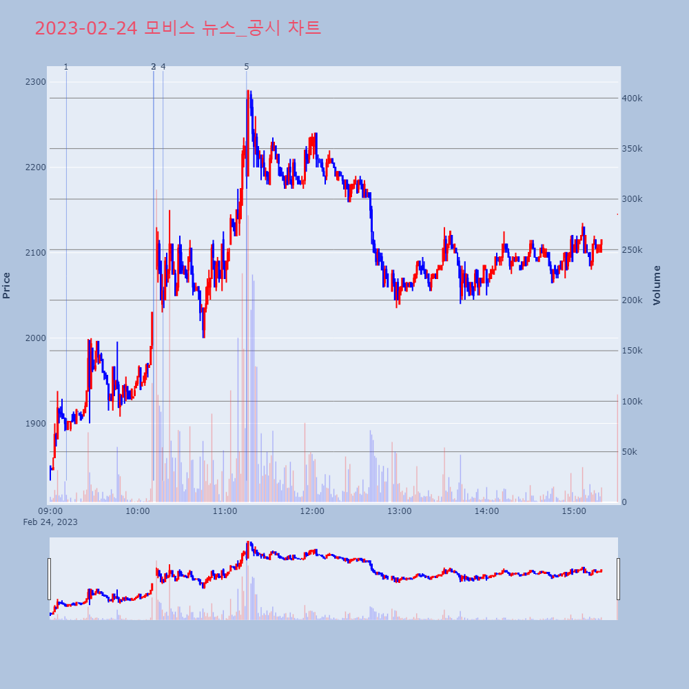 3 | 모비스, +13.09% VI 발동모비스가 VI가 발동했다. 전일 대비 13.09% 상승 | 조선경제 | 모비스 | 2023-02-24 10:11:01 |