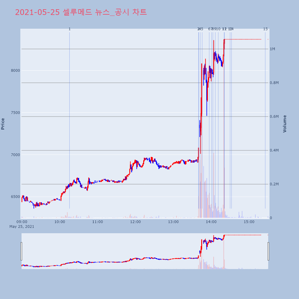 | 15 | 3 | 셀루메드, +9.94% VI 발동셀루메드(049180)가 VI가 발동했다. 전일 대비 | 조선경제 | 셀루메드 | 2021-05-25 13:40:07 |