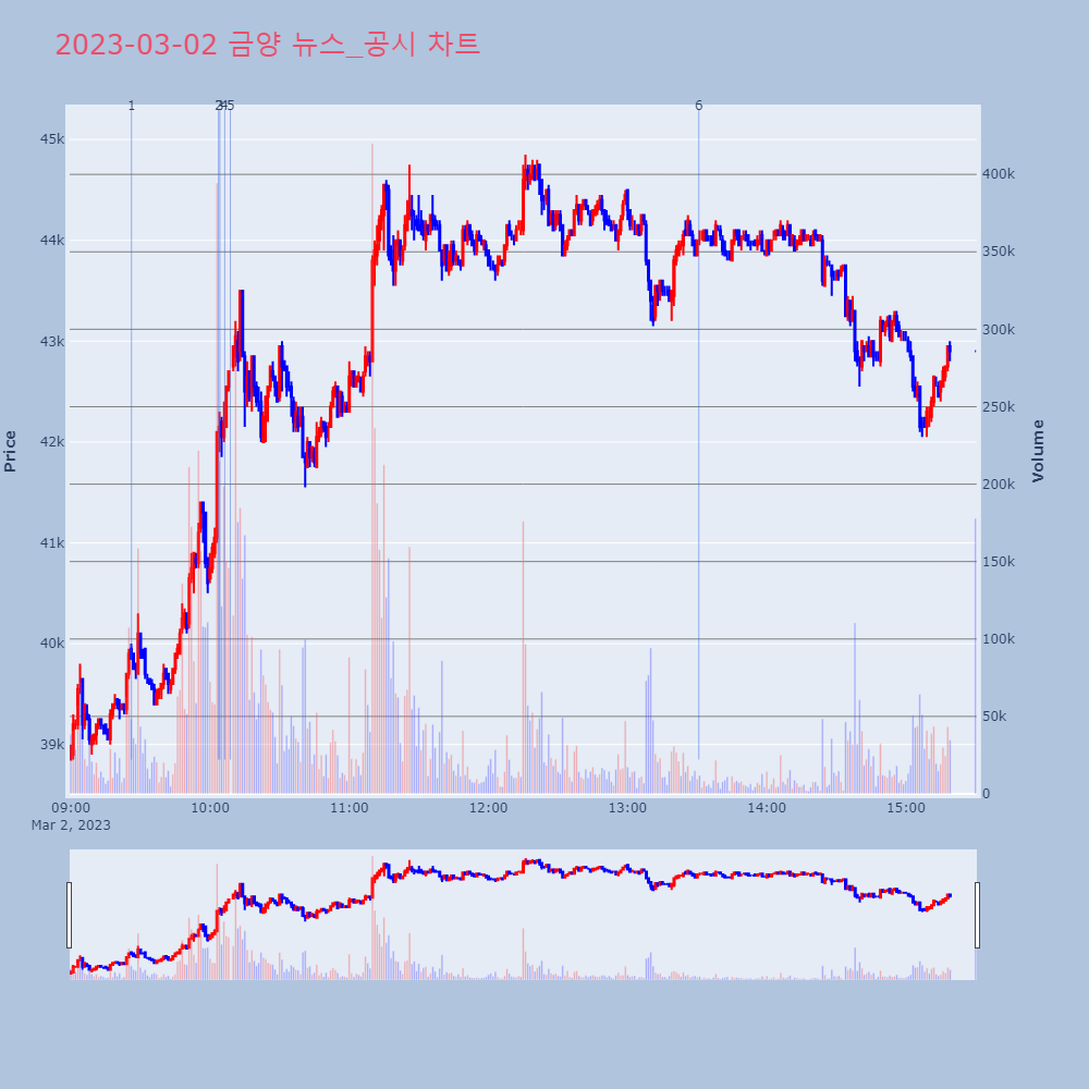 | 5 | 금양, +10.91% VI 발동금양이 VI가 발동했다. 전일 대비 10.91% 상승한 | 조선경제 | 금양 | 2023-03-02 10:08:46 |