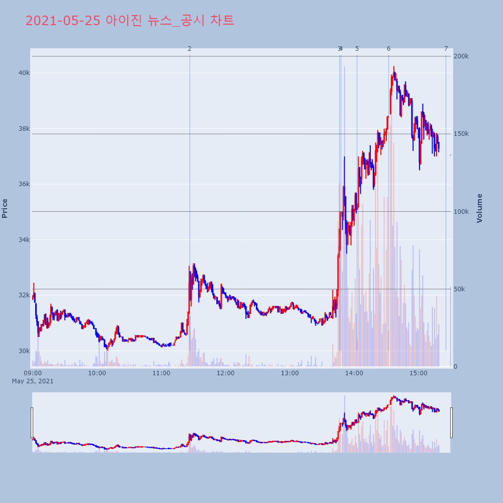 | 6 | 1 | 아이진, -12.93% VI 발동아이진(185490)이 VI가 발동했다. 전일 대비 1 | 조선경제 | 아이진 | 2021-05-24 09:35:21 |
