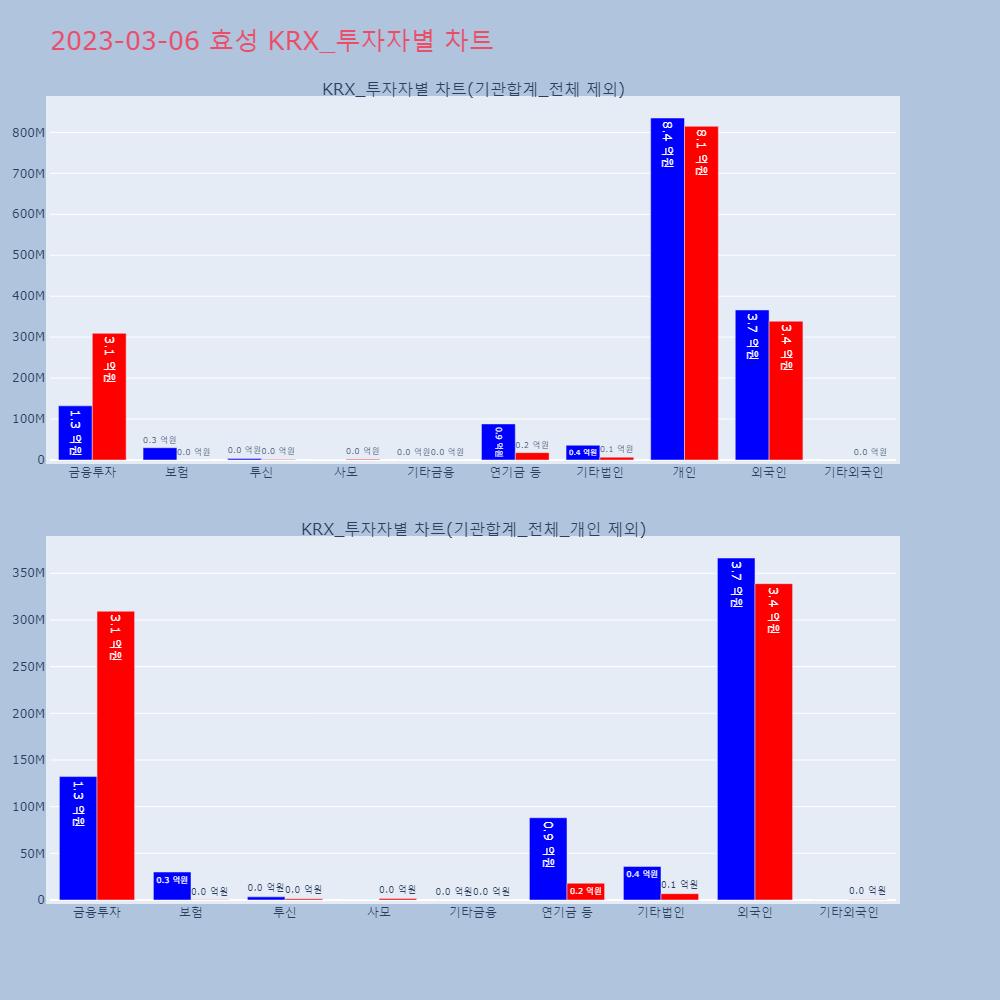 | 투자기관 | 거래량_매도 | 거래량_매수 | 거래량_순매수 | 거래대금_매도 | 거래대금_매수 | 거래대금_순매수 |