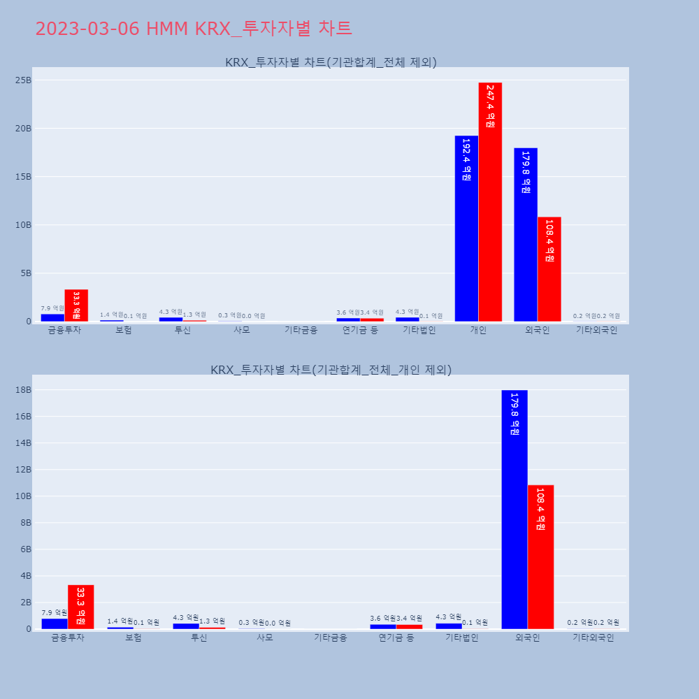 | 개인 | 453,682 | 214,386 | -239,296 | 346,603,530,000 | 163,299,933,000 | -183,303,597,000 |