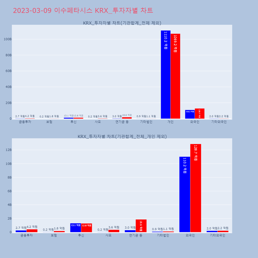 | 투자기관 | 거래량_매도 | 거래량_매수 | 거래량_순매수 | 매도(백만) | 매수(백만) | 순매수(백만) |