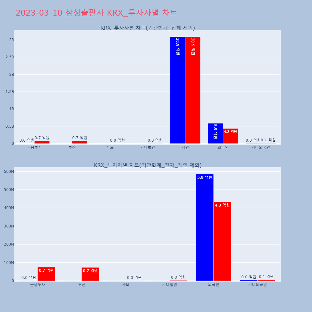 | 투자기관 | 매도량/금액(백) | 매수량/금액(백) | 순매수량/금액(백) |