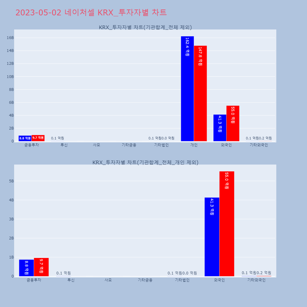 | 투자기관 | 매도량/금액(백) | 매수량/금액(백) | 순매수량/금액(백) |