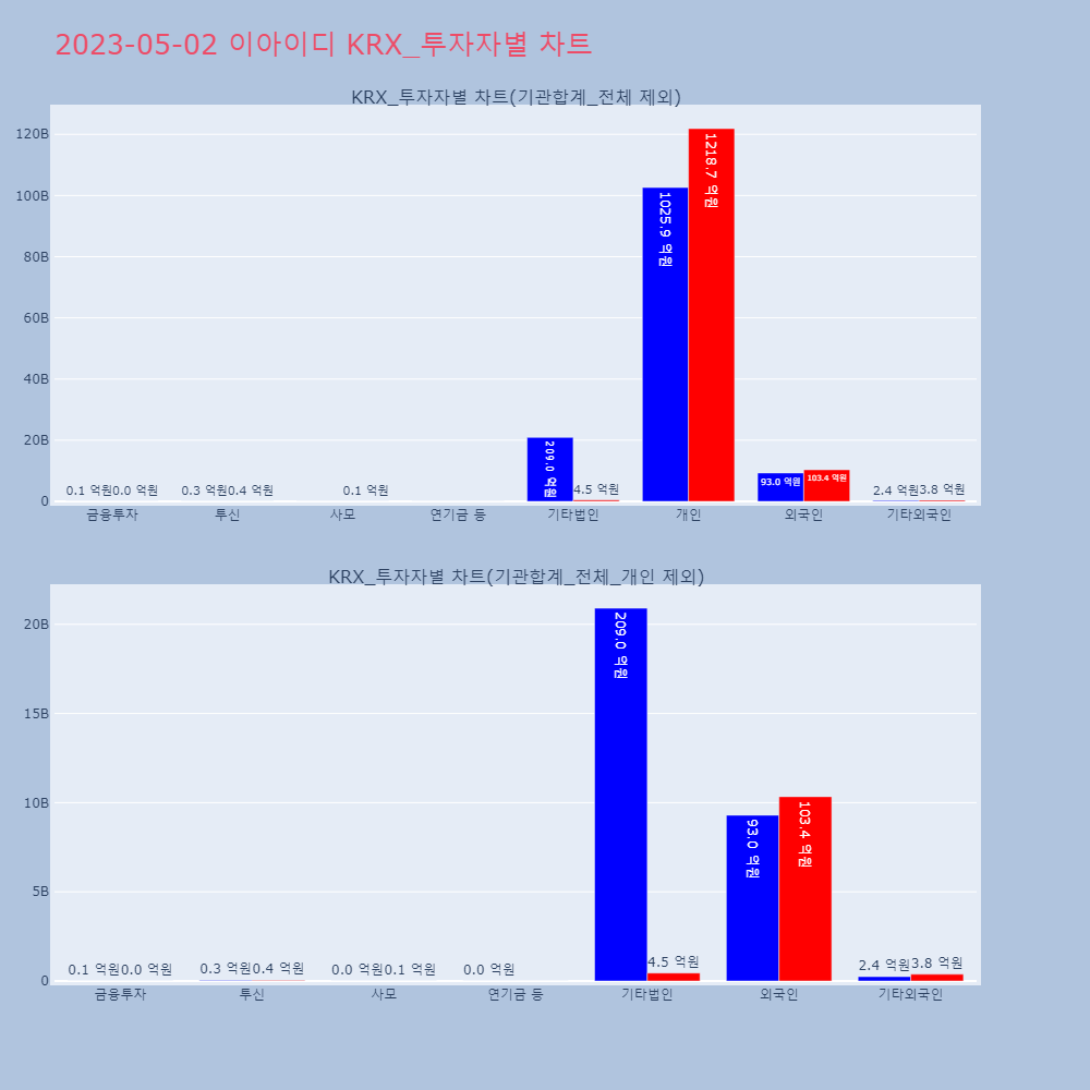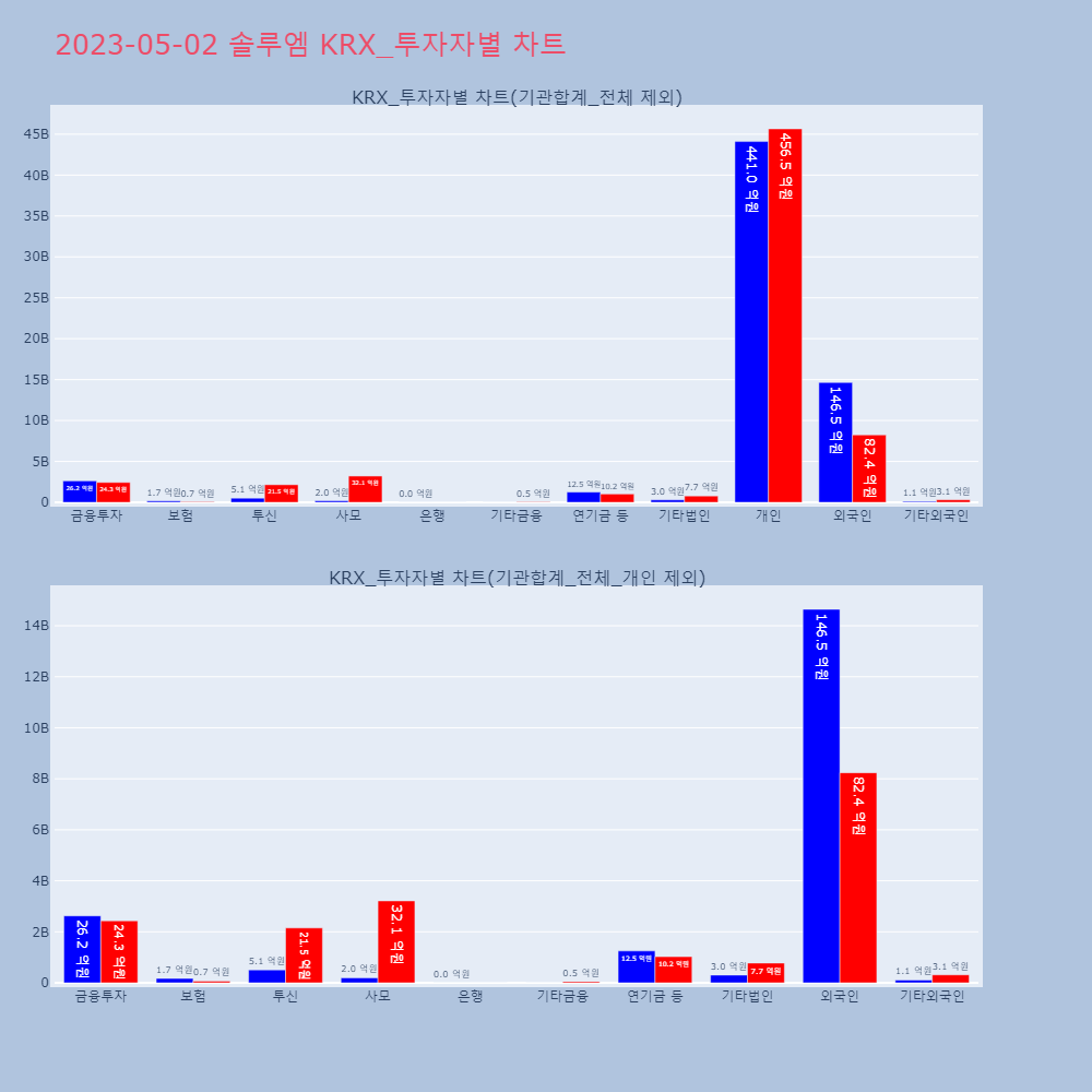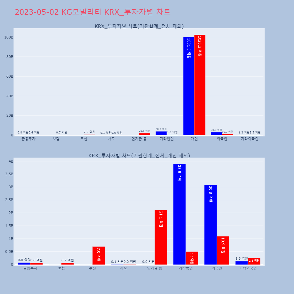 | 투자기관 | 매도량/금액(백) | 매수량/금액(백) | 순매수량/금액(백) |