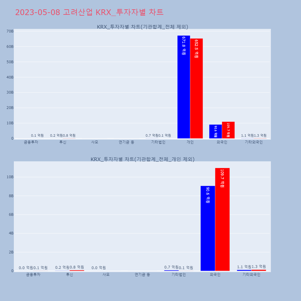 | 투자기관 | 매도량/금액(백) | 매수량/금액(백) | 순매수량/금액(백) |