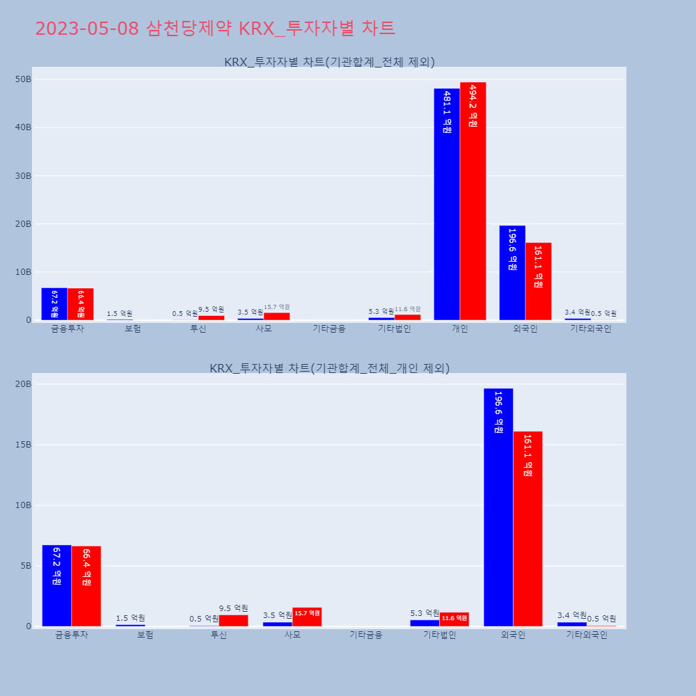 | 투자기관 | 매도량/금액(백) | 매수량/금액(백) | 순매수량/금액(백) |