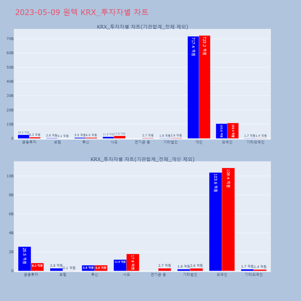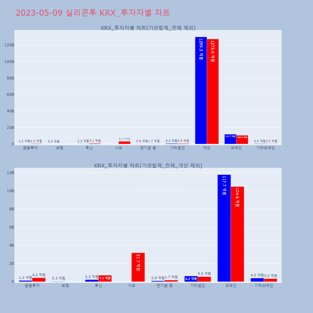 | 투자기관 | 매도량/금액(백) | 매수량/금액(백) | 순매수량/금액(백) |
