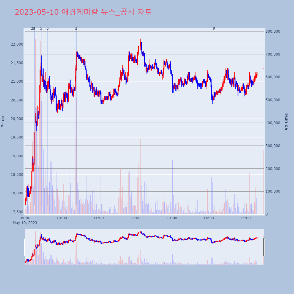 | 9 | [0510 시황레이더] 애경케미칼, 나트륨 이차전지용 음극소재 생산 사실 부제목 : [0510 시황레이더] 애경케미칼, 나트륨 이 | 인포스탁 | 애경케미칼 | 2023-05-10 14:08:51 |