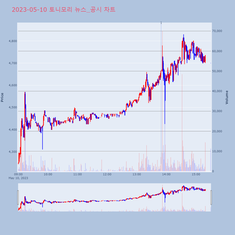 | 1 | 토니모리, +11.07% VI 발동토니모리가 VI가 발동했다. 전일 대비 11.07% 상 | 조선경제 | 토니모리 | 2023-05-10 13:49:30 |