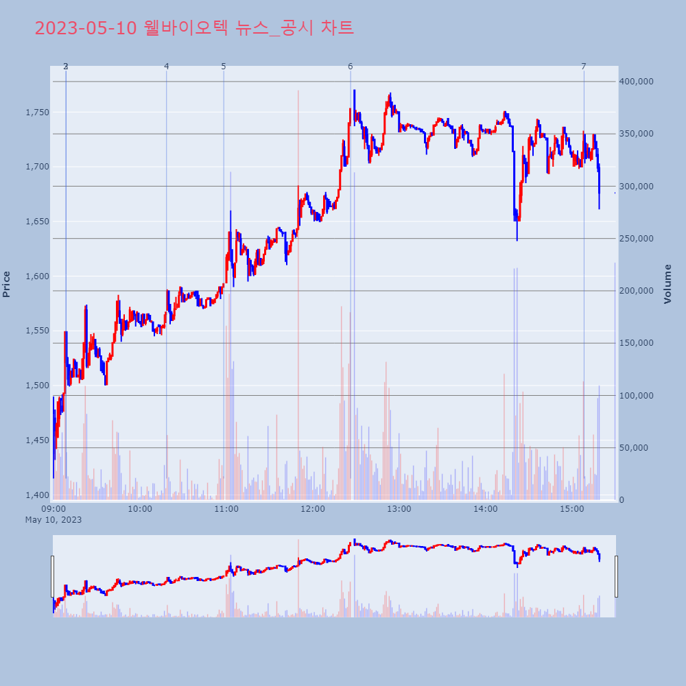 | 5 | 웰바이오텍, +16.45% VI 발동웰바이오텍이 VI가 발동했다. 전일 대비 16.45% | 조선경제 | 웰바이오텍 | 2023-05-10 10:58:13 |