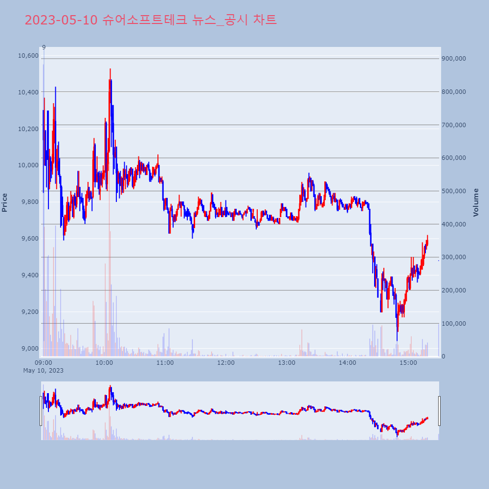 [슈어소프트테크(298830) (+9.18%)] (종가등락률:+0.74%)