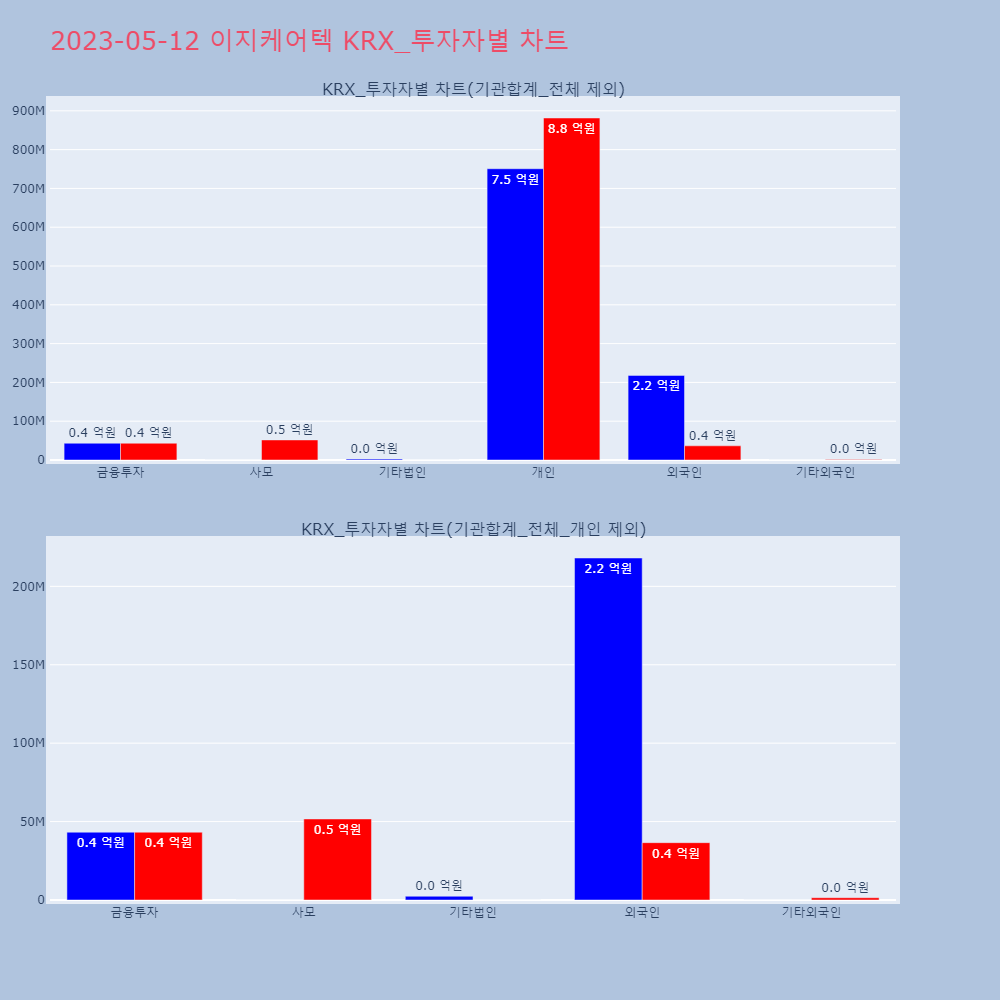 | 투자기관 | 매도량/금액(백) | 매수량/금액(백) | 순매수량/금액(백) |