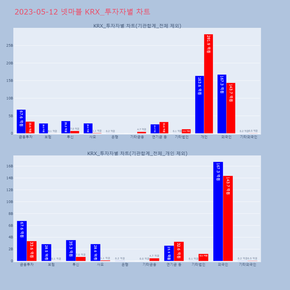 | 투자기관 | 매도량/금액(백) | 매수량/금액(백) | 순매수량/금액(백) |