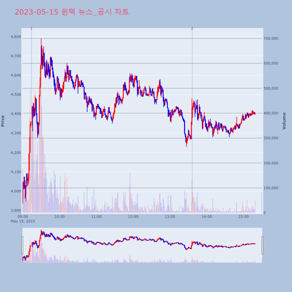 | 3 | 윈텍, 최대주주 변경 수반 주식양수도 계약 체결 제목 : 윈텍, 최대주주 변경 수반 주식양수도 계약 체 | 인포스탁 | 윈텍 | 2023-05-15 17:39:31 |