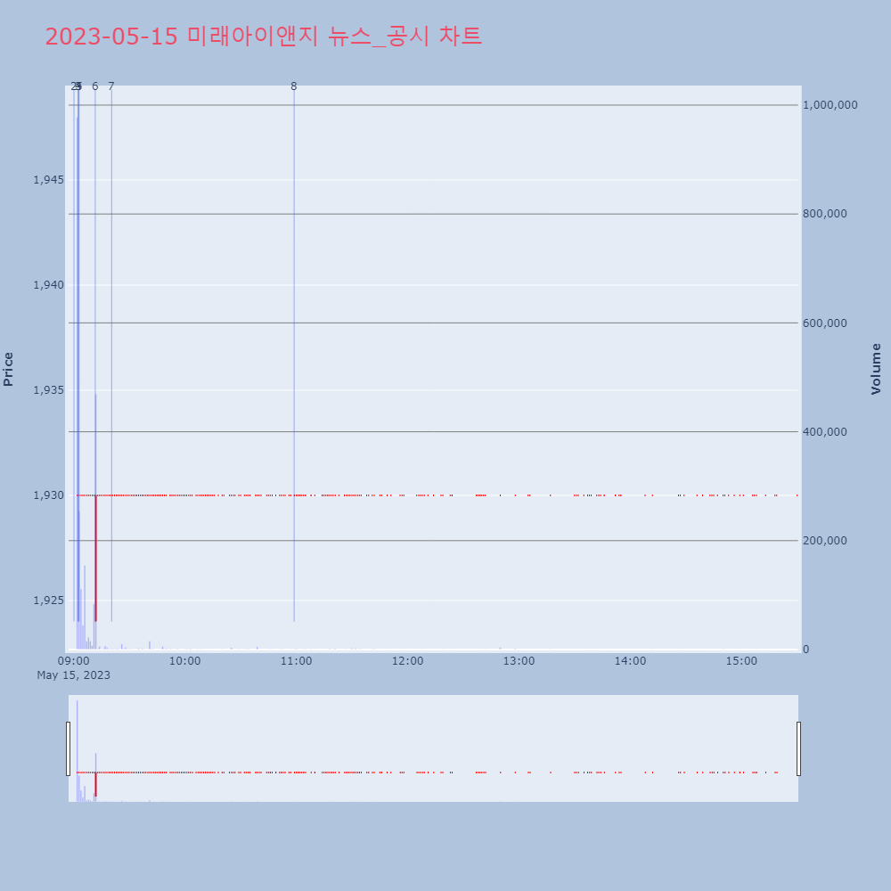 | 2 | 미래아이앤지, 0.00% VI 발동미래아이앤지가 VI가 발동했다. 현재 1,485원에 거 | 조선경제 | 미래아이앤지 | 2023-05-15 09:00:12 |