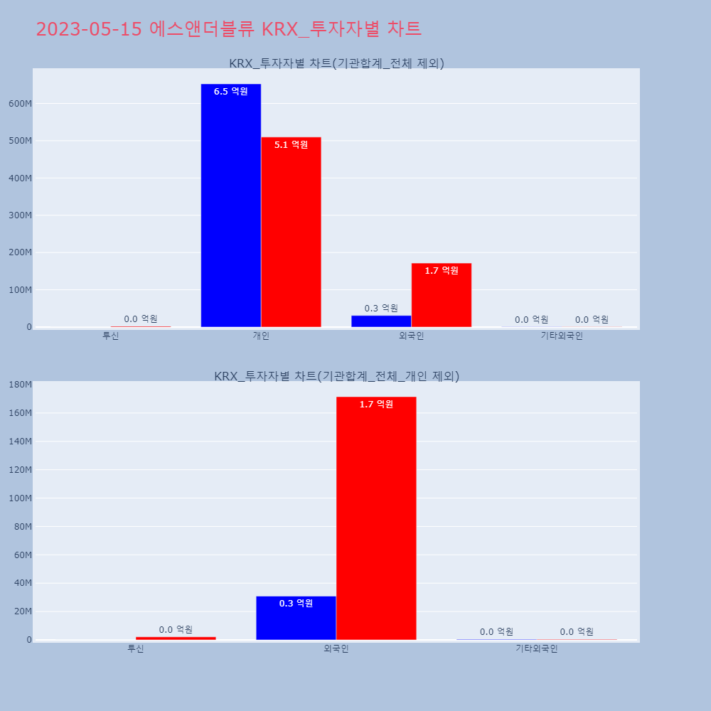 | 투자기관 | 매도량/금액(백) | 매수량/금액(백) | 순매수량/금액(백) |