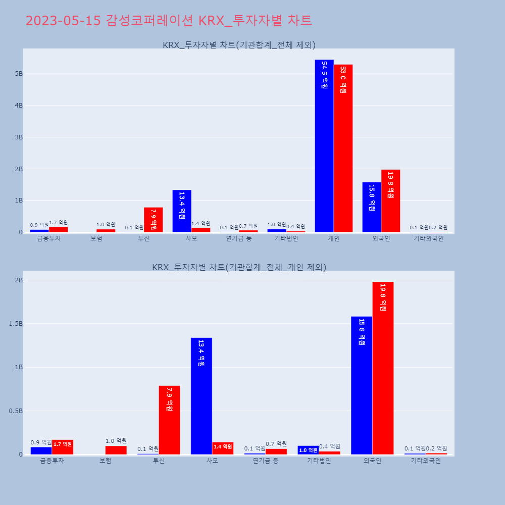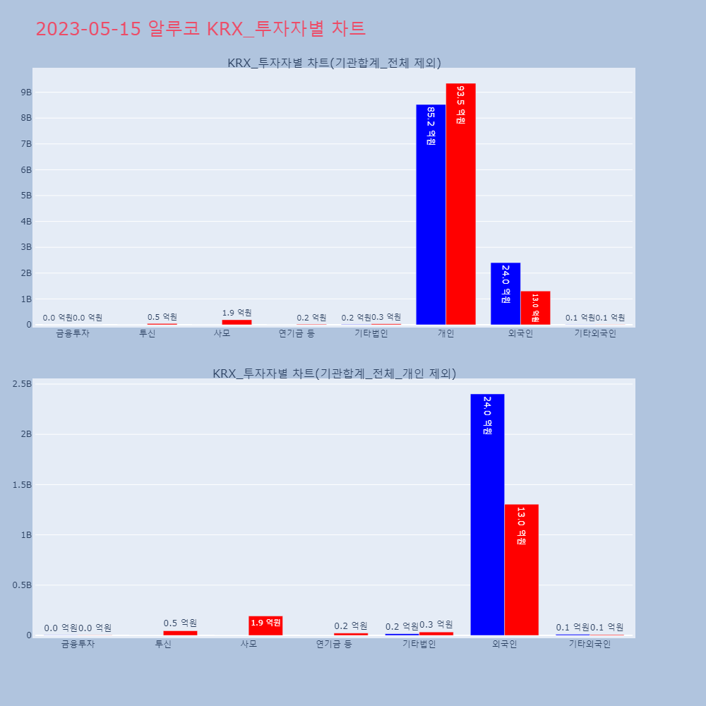 | 투자기관 | 매도량/금액(백) | 매수량/금액(백) | 순매수량/금액(백) |