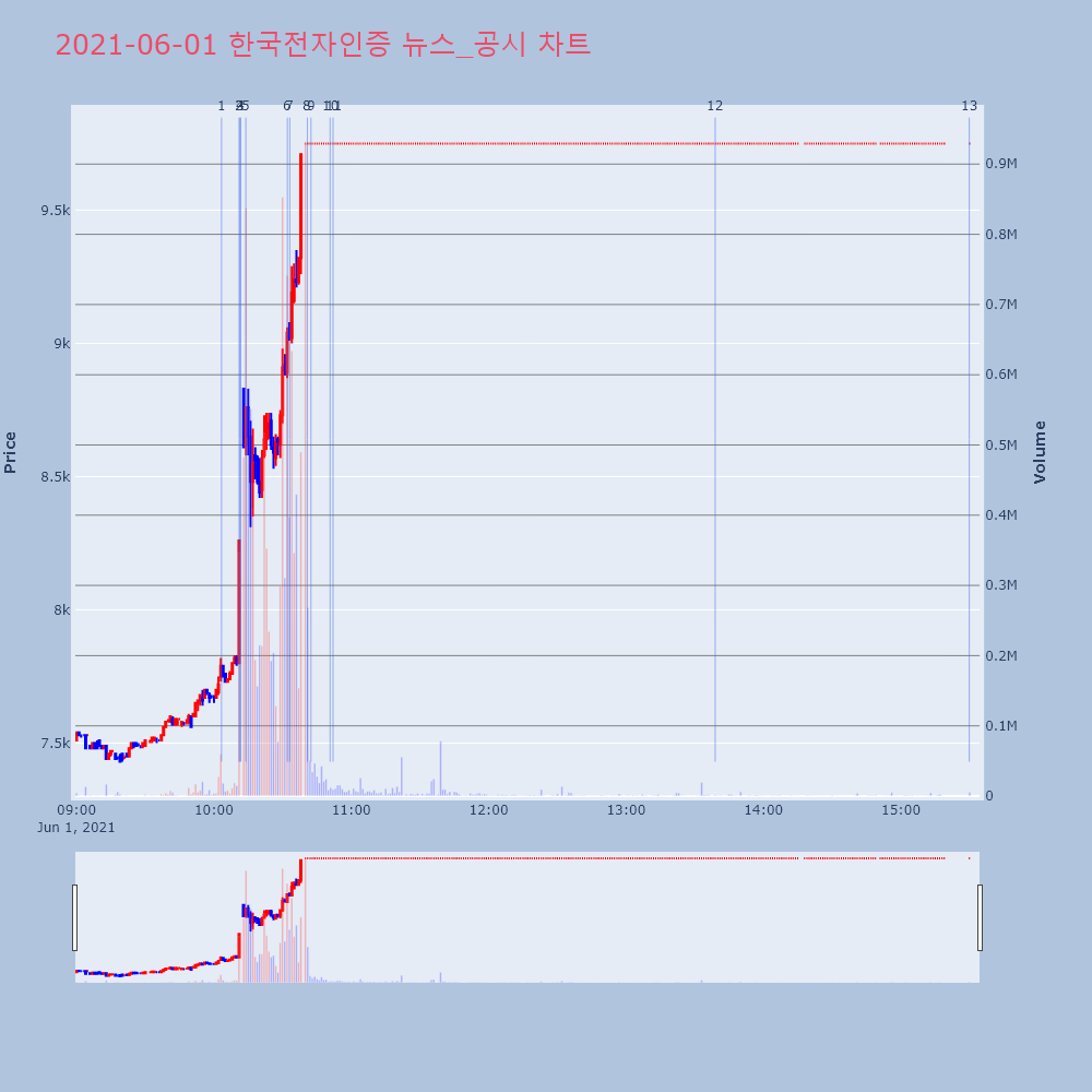 | 9 | 4 | 한국전자인증, +10.13% VI 발동한국전자인증(041460)이 VI가 발동했다. 전일 대 | 조선경제 | 한국전자인증 | 2021-06-01 10:11:36 |