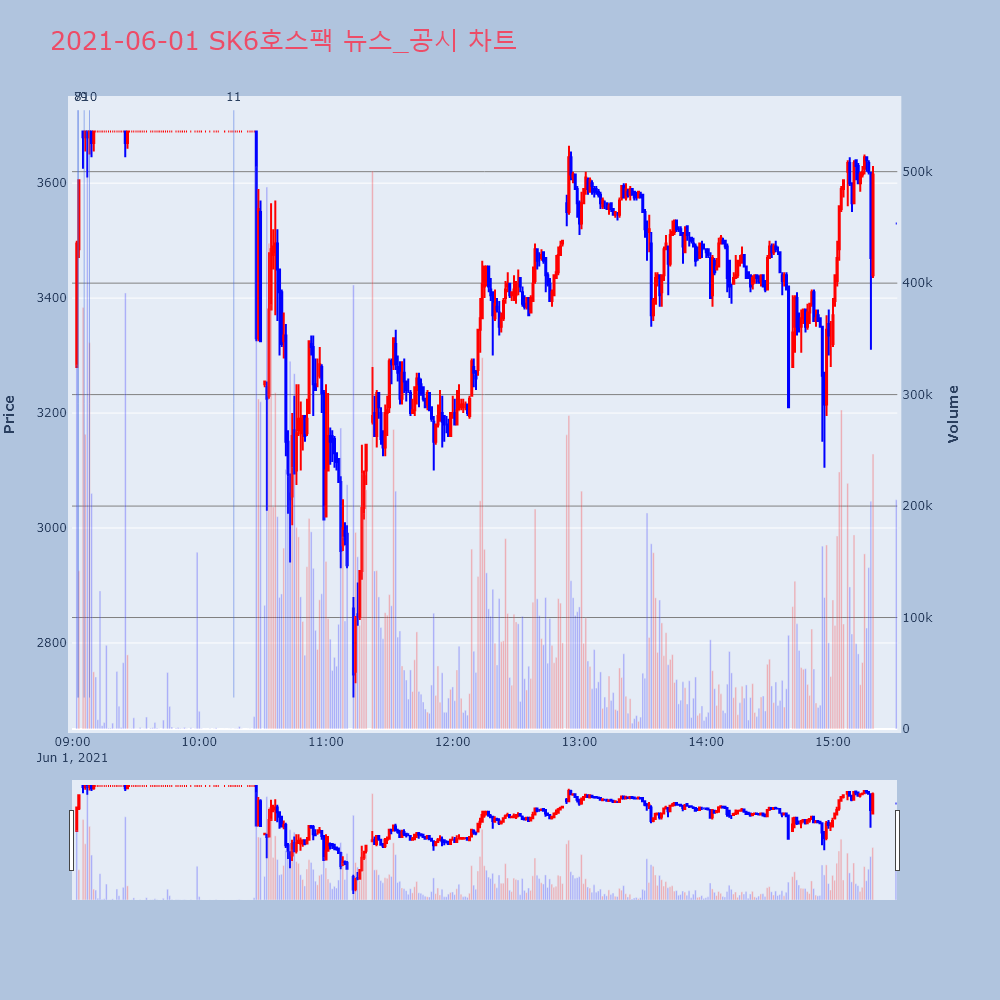 | 8 | 3 | SK6호스팩, +12.13% VI 발동SK6호스팩(340350)이 VI가 발동했다. 전일 대 | 조선경제 | SK6호스팩 | 2021-05-31 12:34:03 |