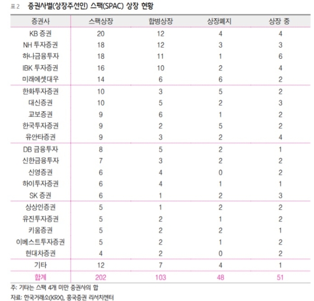 이런 스팩들이 우량 비상장회사를 발굴해 합병하면 주가 상승으로 이어질 가능성이 높다. 물론 모든 스팩이 합병에 성공하는 건 아니다. 흥국증권에 따르면 지난해까지 스팩의 누적 합병성공률은 50% 수준이다. '짝'을 만나지 못하는 스팩도 절반가량 된다는 의미다.
