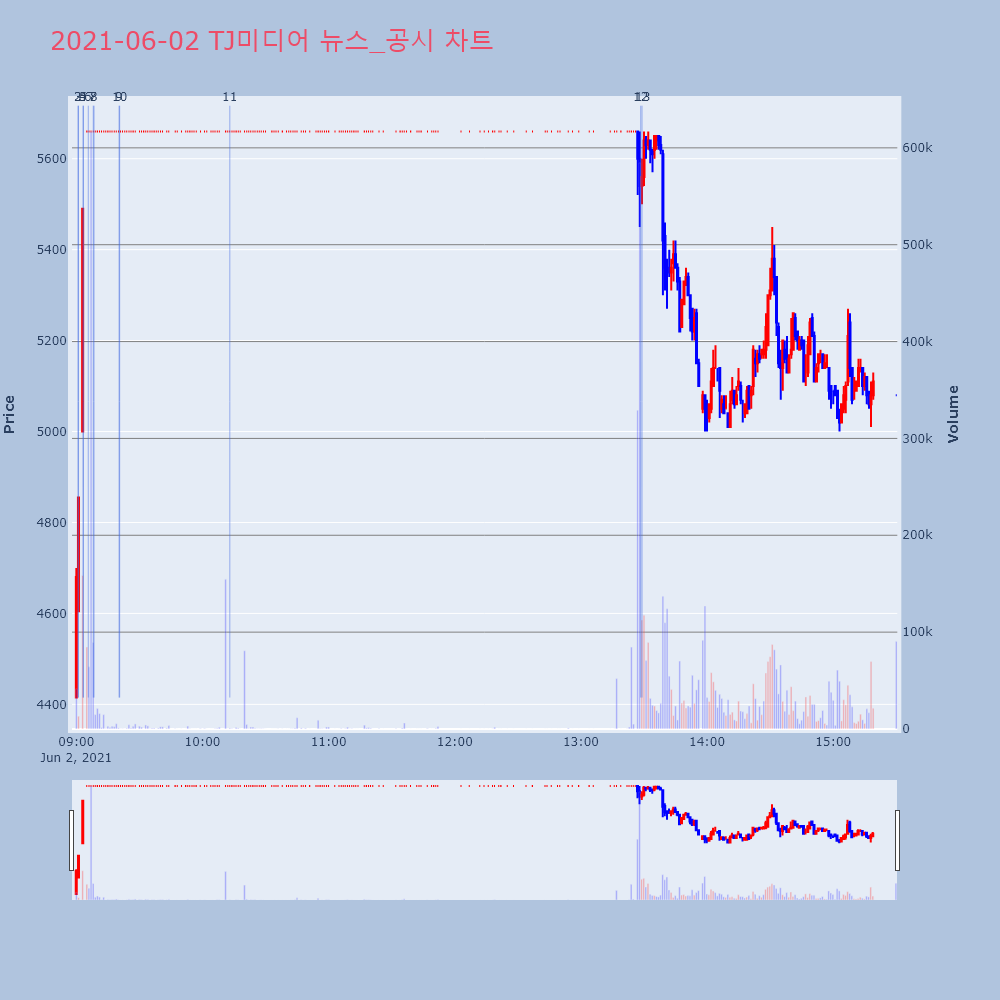 | 10 | 3 | TJ미디어, +11.01% VI 발동TJ미디어(032540)가 VI가 발동했다. 전일 대비 | 조선경제 | TJ미디어 | 2021-06-02 09:01:01 |