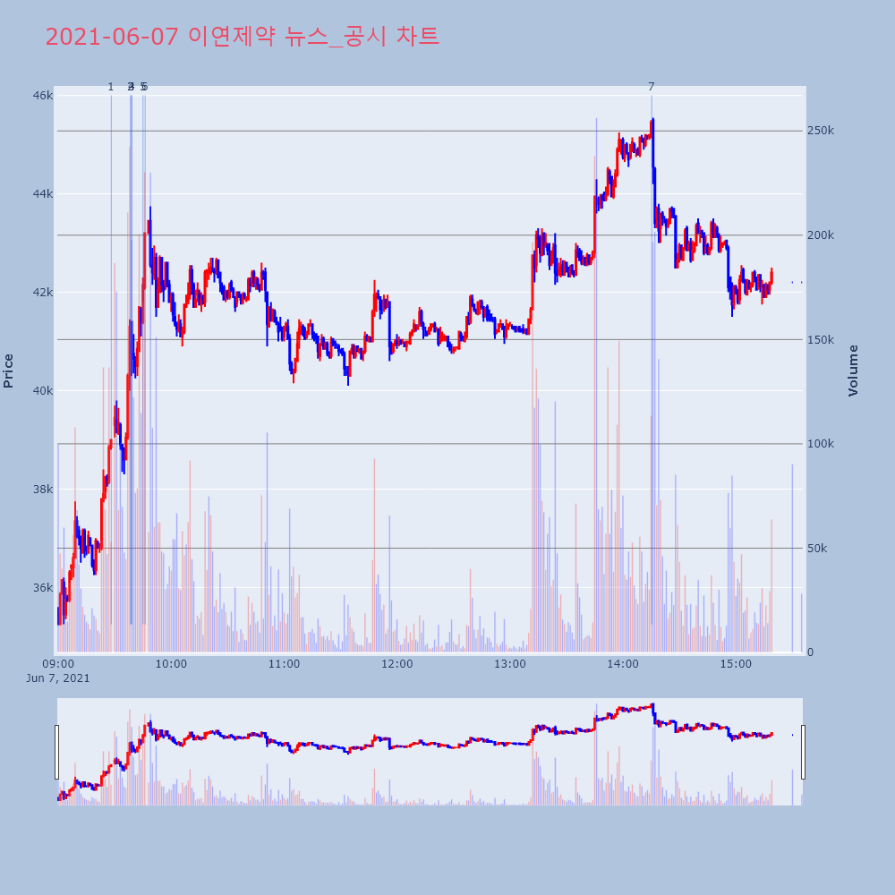 | 6 | 1 | 이연제약, +6.85% VI 발동이연제약(102460)이 VI가 발동했다. 전일 대비 | 조선경제 | 이연제약 | 2021-06-07 09:28:11 |