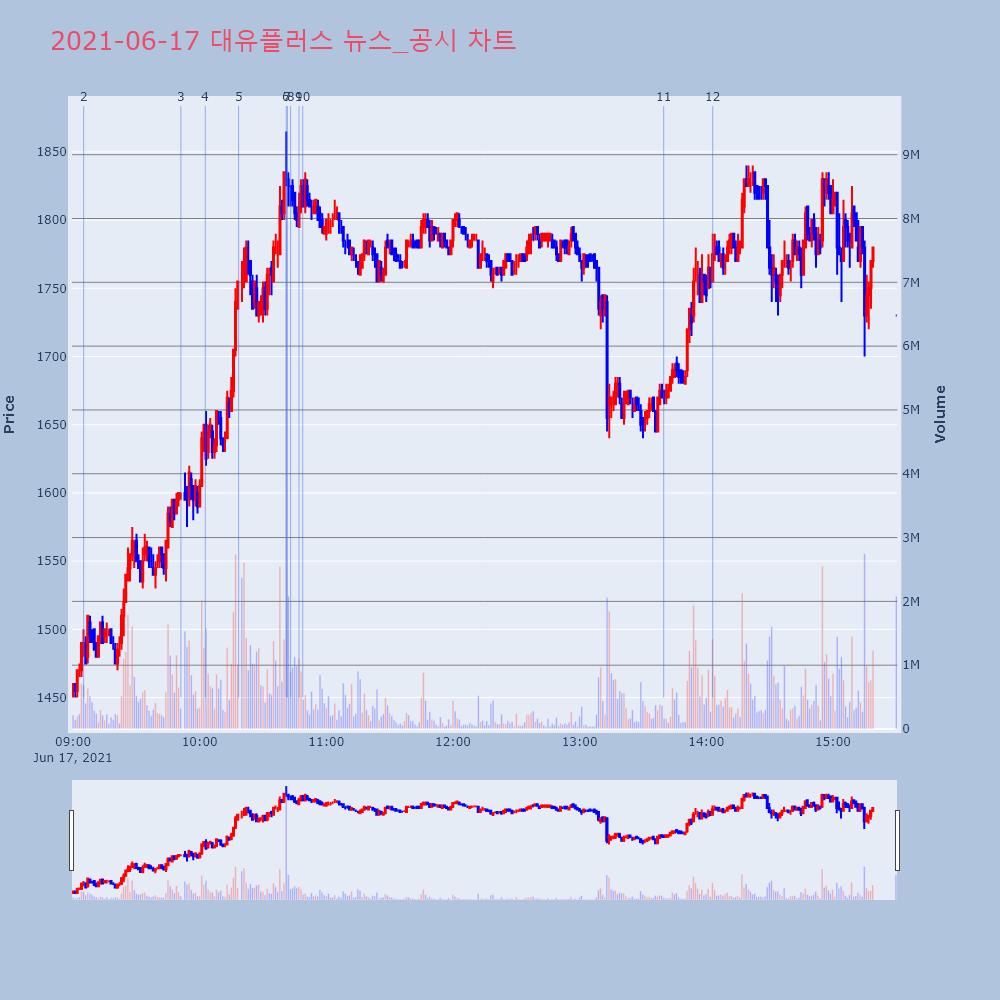10 | 3 | 대유플러스, +11.50% VI 발동대유플러스(000300)가 VI가 발동했다. 전일 대비 | 조선경제 | 대유플러스 | 2021-06-17 09:51:06 |