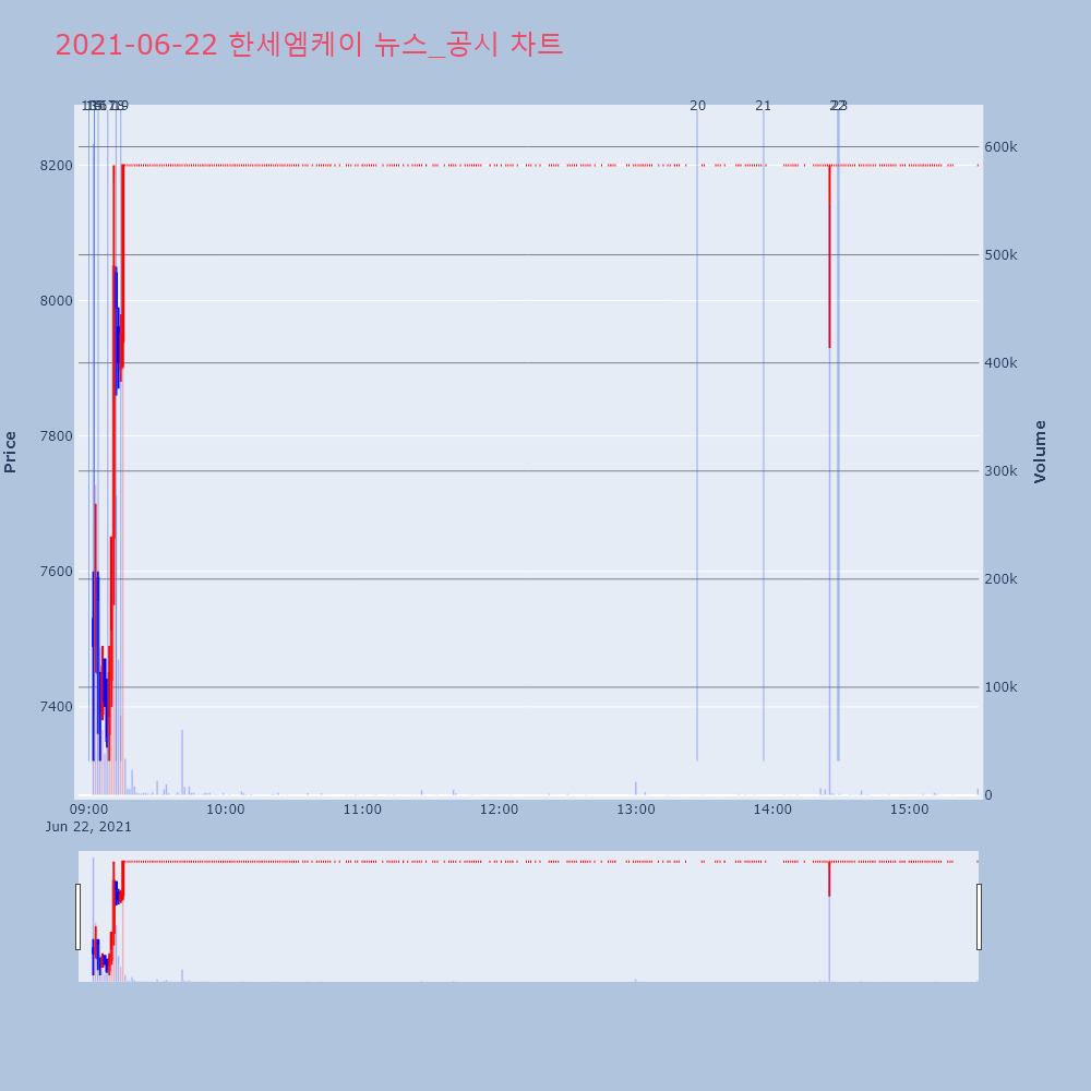 4 23 ‘최재형 관련주' 한세엠케이, 이틀 연속 상한가한세엠케이(069640)가 22일 오후 상한가를 기록하 조선경제 한세엠케이 2021-06-22 14:29:06