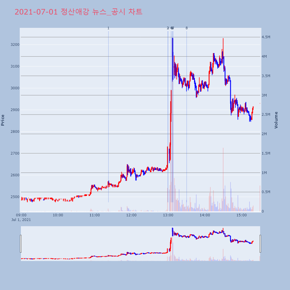 | 5 | 3 | 정산애강, +9.86% VI 발동정산애강(022220)이 VI가 발동했다. 전일 대비 | 조선경제 | 정산애강 | 2021-07-01 12:59:49 |