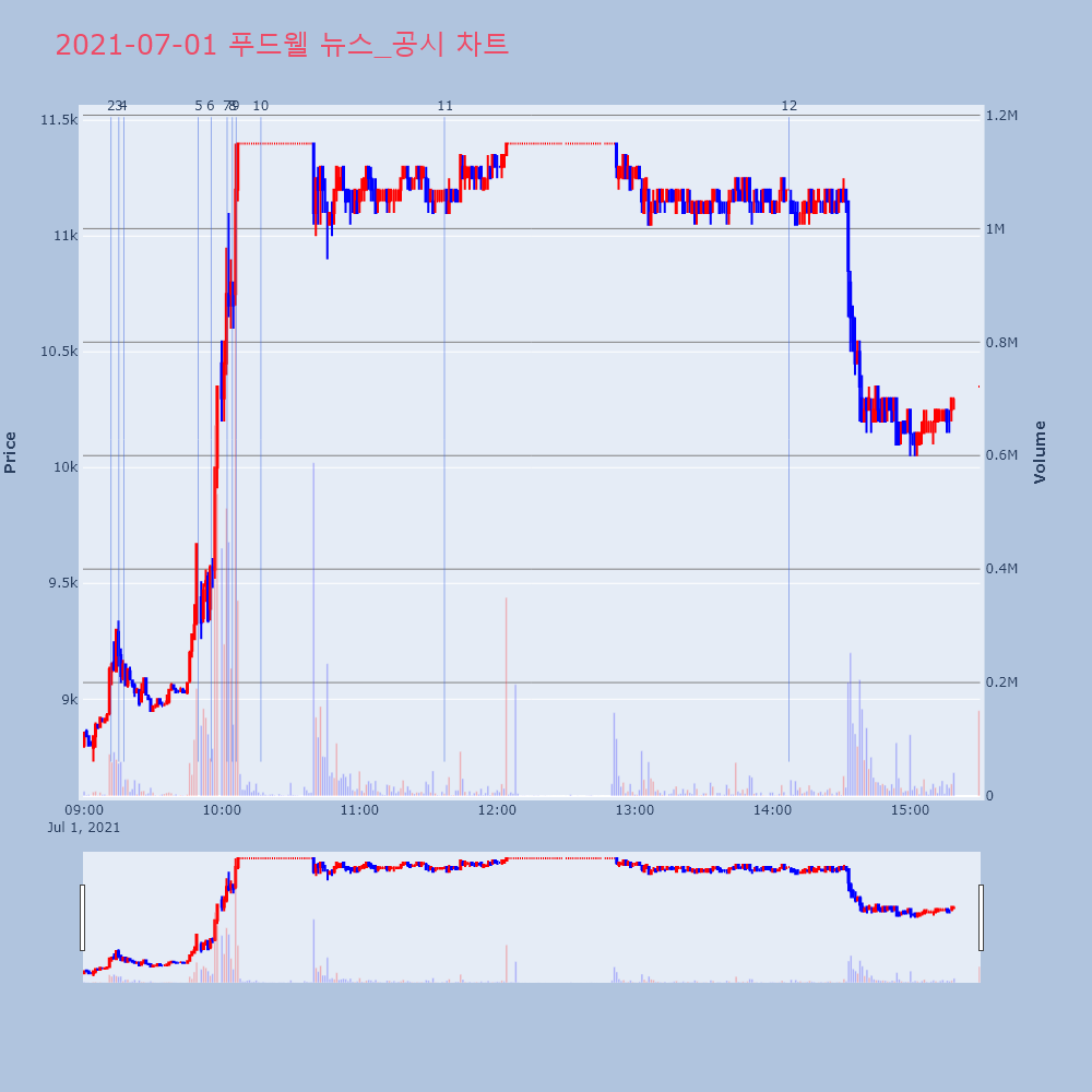 | 7 | 5 | 푸드웰, +9.89% VI 발동푸드웰(005670)이 VI가 발동했다. 전일 대비 9 | 조선경제 | 푸드웰 | 2021-07-01 09:49:43 |