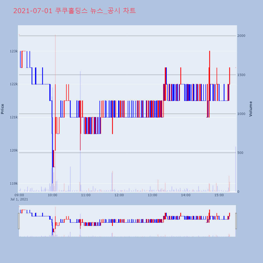 | 2021-07-01 17:30:00 | 유가증권 | 00132354 | 쿠쿠홀딩스 | 20210701800543 | 주주총회소집결의 | 쿠쿠홀딩스 | 한국거래소 유가증권시장본부 |