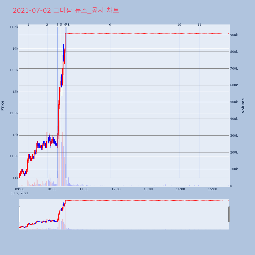 | 9 | 2 | 코미팜, +9.05% VI 발동코미팜(041960)이 VI가 발동했다. 전일 대비 9 | 조선경제 | 코미팜 | 2021-07-02 09:51:30 |