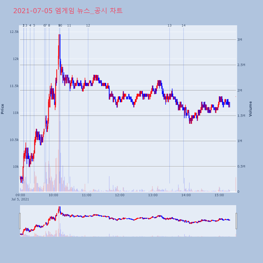 | 9 | 6 | 엠게임, +11.34% VI 발동엠게임(058630)이 VI가 발동했다. 전일 대비 1 | 조선경제 | 엠게임 | 2021-07-05 09:43:50 |
