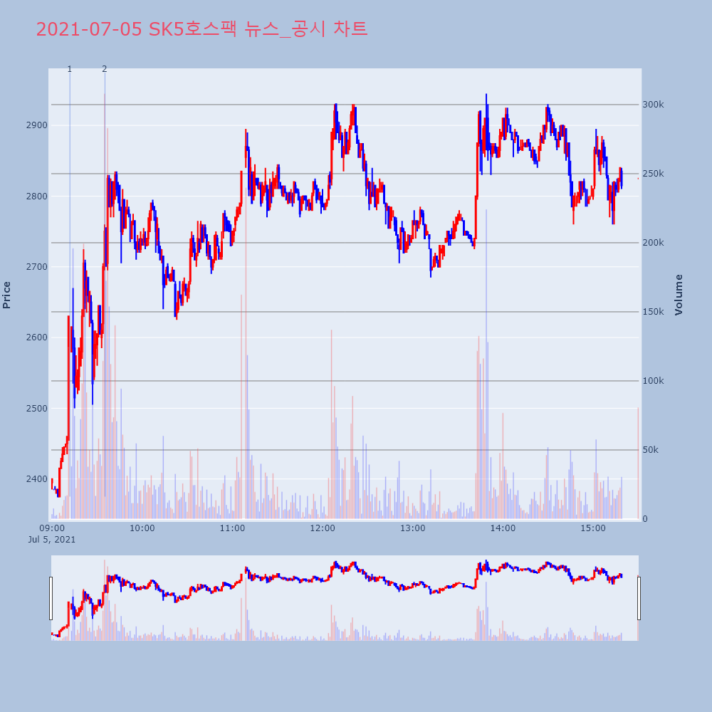 | 1 | 1 | SK5호스팩, +10.27% VI 발동SK5호스팩(337450)이 VI가 발동했다. 전일 대 | 조선경제 | SK5호스팩 | 2021-07-05 09:11:54 |