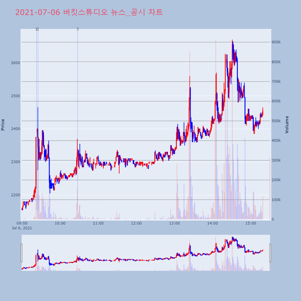 | 2 | 1 | 버킷스튜디오, +9.45% VI 발동버킷스튜디오(066410)가 VI가 발동했다. 전일 대 | 조선경제 | 버킷스튜디오 | 2021-07-06 09:22:53 |