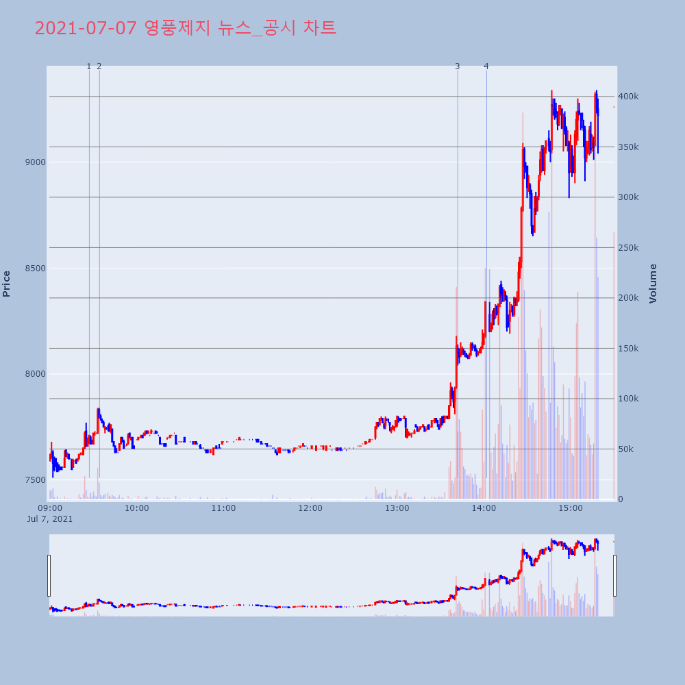 | 0 | 13 | [급등락주 짚어보기] 대영포장부터 휴먼엔까지...코로나19 확진자 급증 영[이투데이/조성진 기자(csjjin2002@etoday | 이투데이 | 대영포장 | 2021-07-07 16:26:47 |