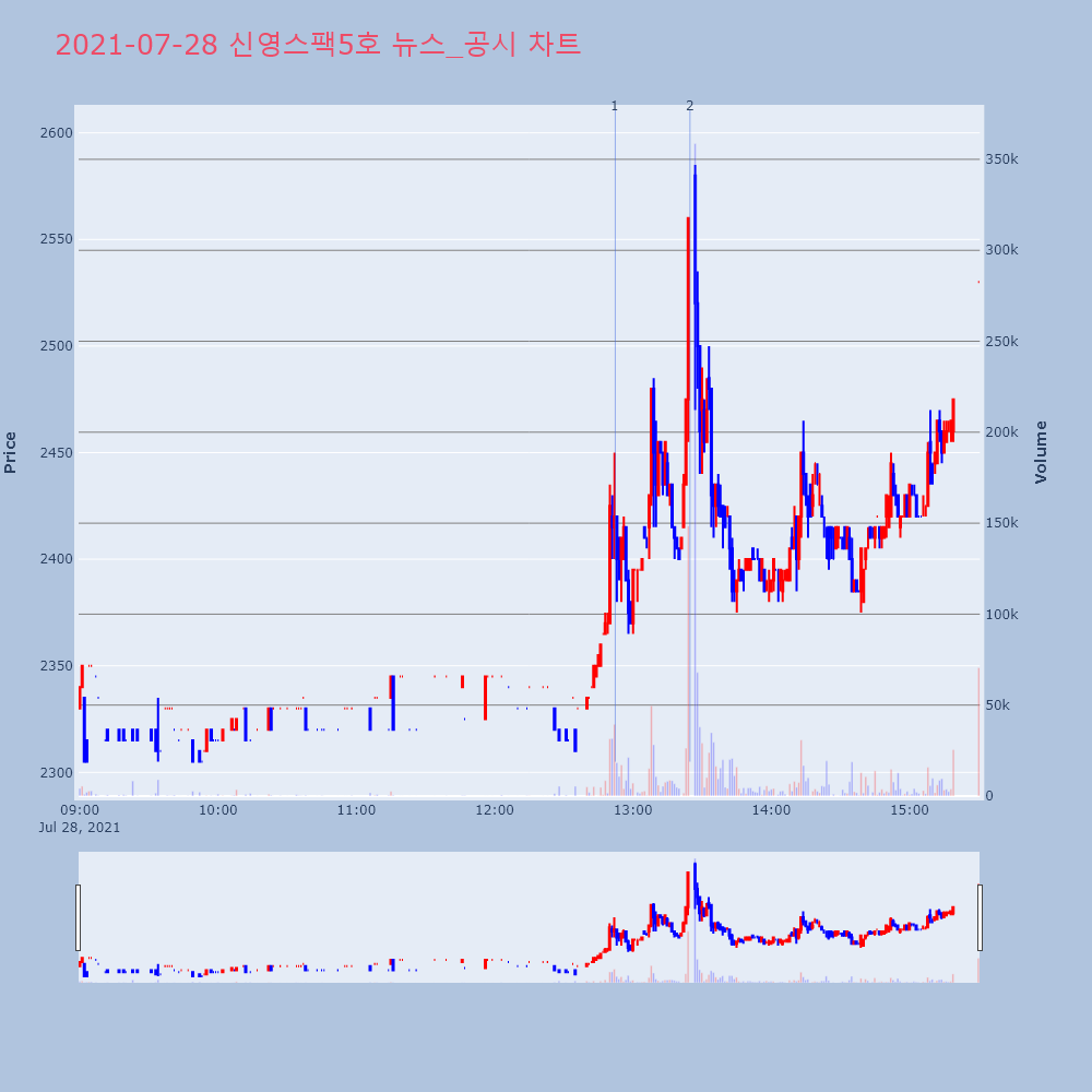 | 0 | 2 | 신영스팩5호, +11.06% VI 발동신영스팩5호(323280)가 VI가 발동했다. 전일 대 | 조선경제 | 신영스팩5호 | 2021-07-28 13:24:44 |