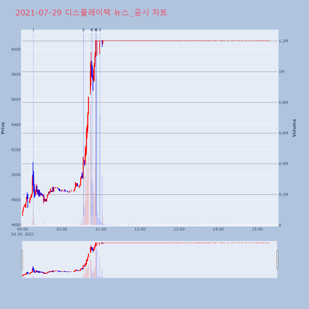 | 9 | 2 | 디스플레이텍, +9.95% VI 발동디스플레이텍(066670)이 VI가 발동했다. 전일 대 | 조선경제 | 디스플레이텍 | 2021-07-29 10:33:29 |