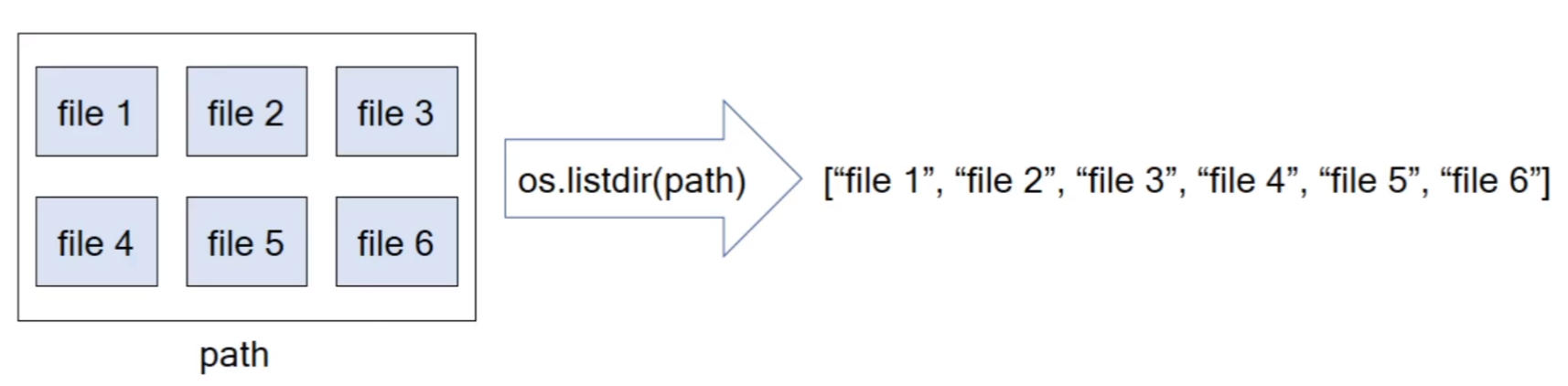 - os.listdir(path) -> path 상에 있는 모든 파일명을 리스트 형태로 반환한다.