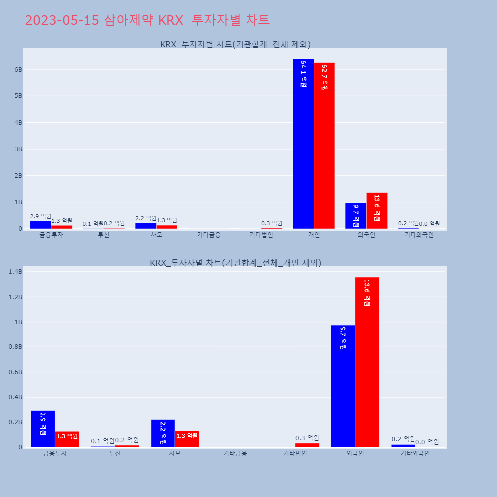 | 투자기관 | 매도량/금액(백) | 매수량/금액(백) | 순매수량/금액(백) |