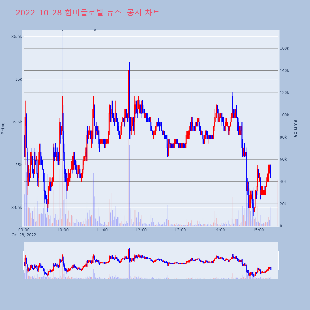 | 4 | [강세 토픽] 네옴시티 관련주 테마, 한미글로벌 +8.19%, SNT에너지 +3.30%[네옴시티 관련주] 테마가 강세다. 전일 대비 2.82 | 조선경제 | 한미글로벌 | 2022-10-27 09:51:31 |