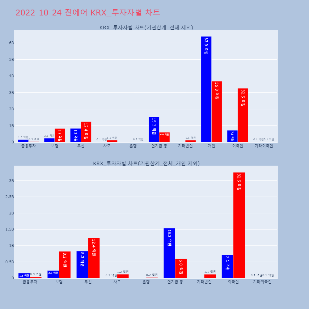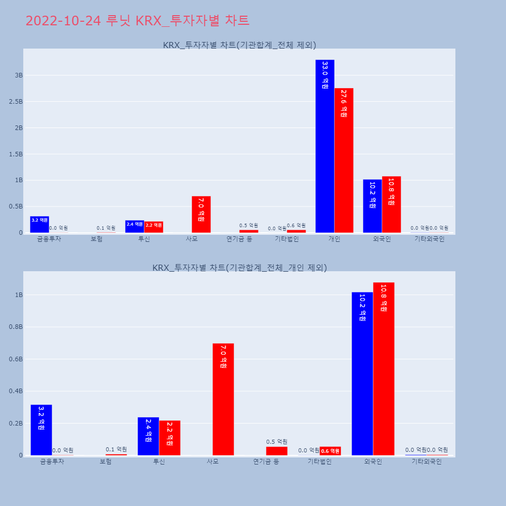 | 투자기관 | 거래량_매도 | 거래량_매수 | 거래량_순매수 | 거래대금_매도 | 거래대금_매수 | 거래대금_순매수 |