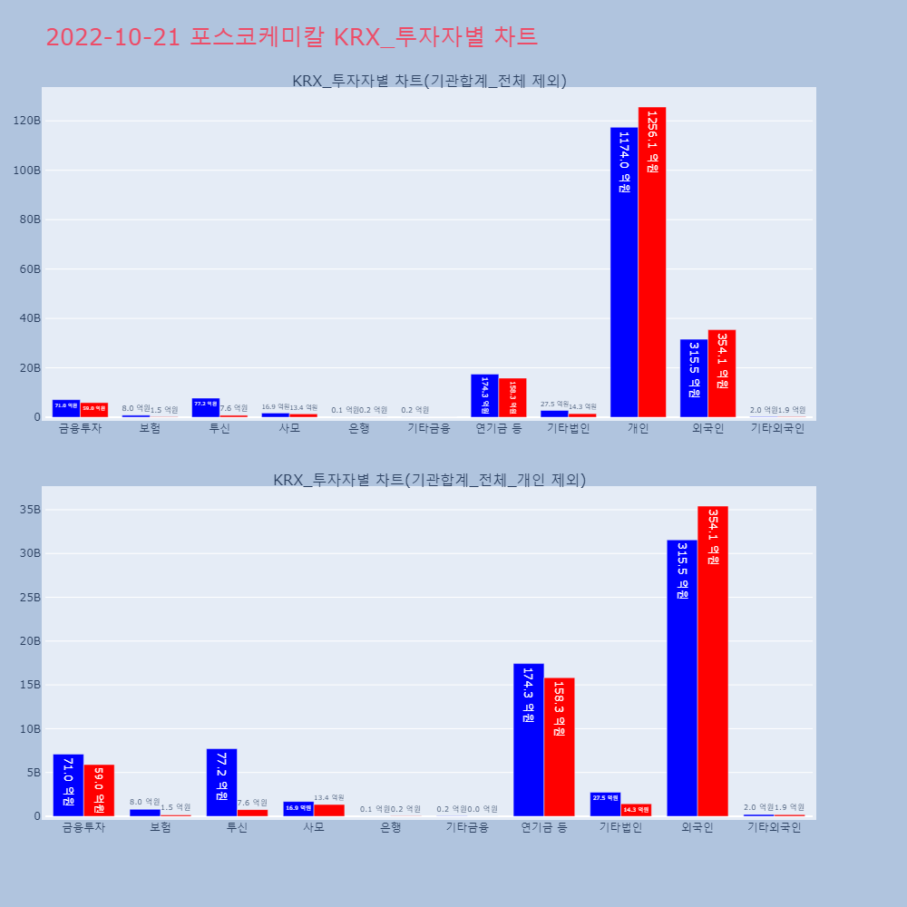 | 투자기관 | 거래량_매도 | 거래량_매수 | 거래량_순매수 | 거래대금_매도 | 거래대금_매수 | 거래대금_순매수 |