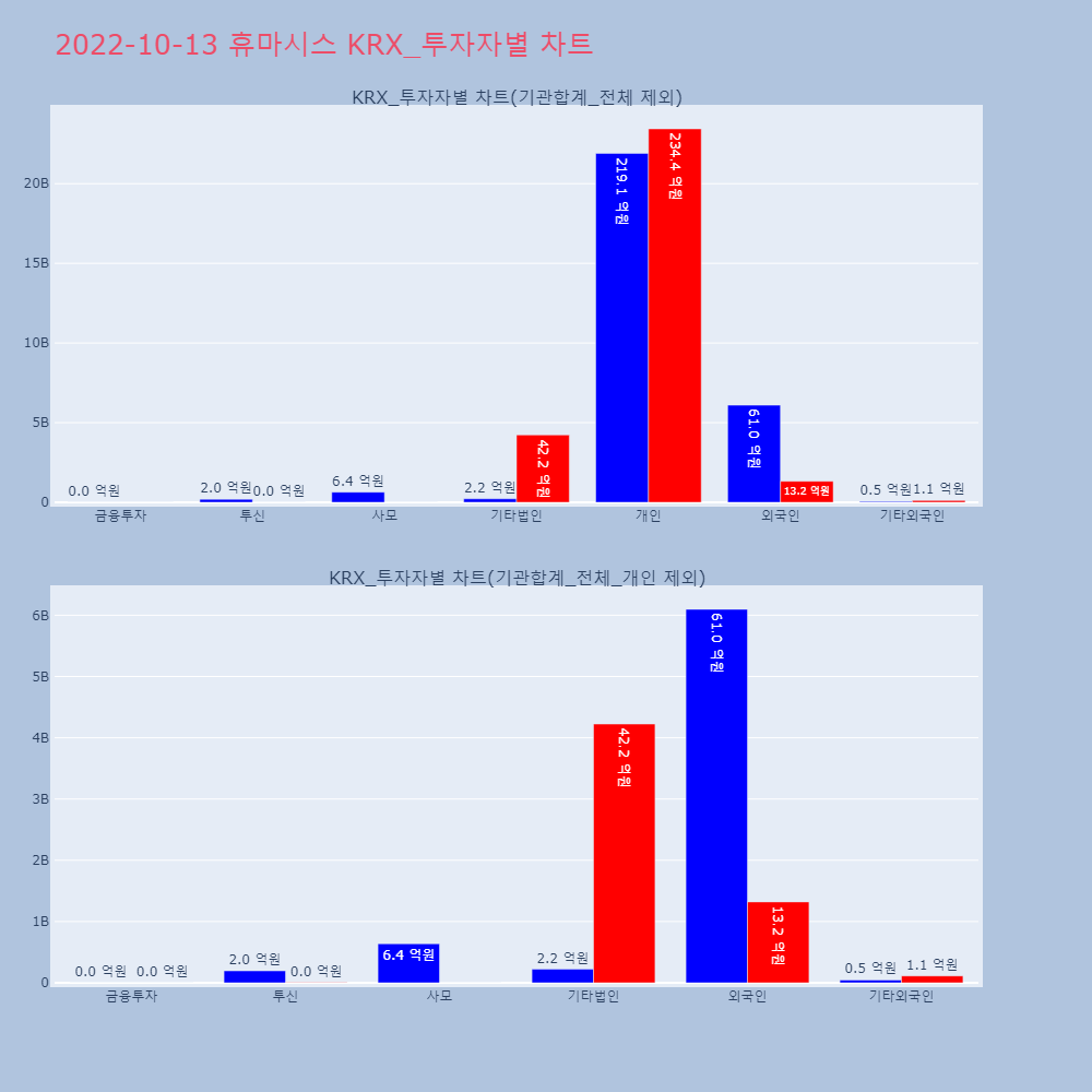| 사모 | 62,115 | 17,478 | -44,637 | 788,403,000 | 222,875,600 | -565,527,400 |