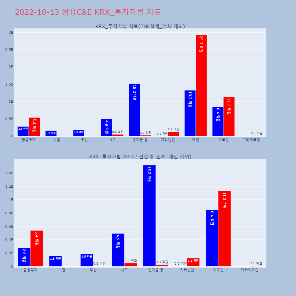 | 투자기관 | 거래량_매도 | 거래량_매수 | 거래량_순매수 | 거래대금_매도 | 거래대금_매수 | 거래대금_순매수 |