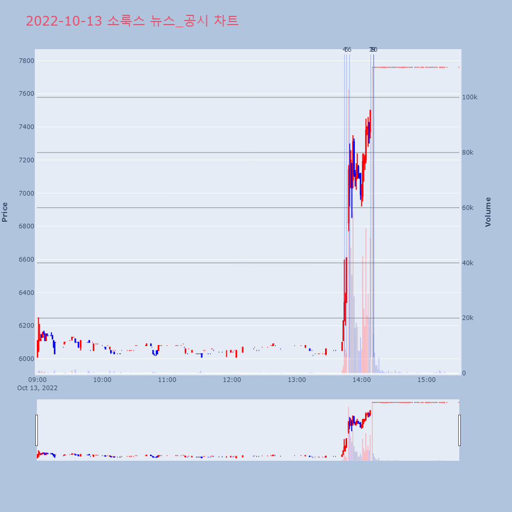 | 5 | 소룩스, +10.72% VI 발동소룩스가 VI가 발동했다. 전일 대비 10.72% 상승 | 조선경제 | 소룩스 | 2022-10-13 13:46:09 |