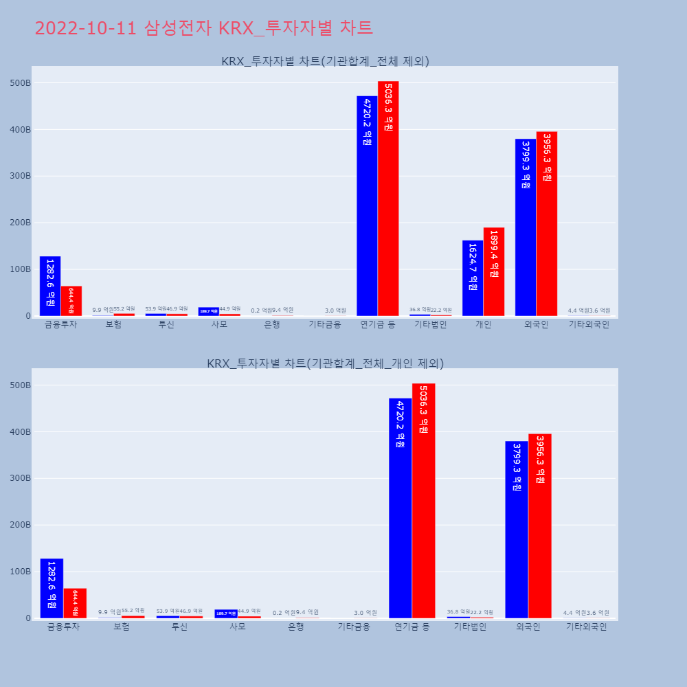 | 투자기관 | 거래량_매도 | 거래량_매수 | 거래량_순매수 | 거래대금_매도 | 거래대금_매수 | 거래대금_순매수 |